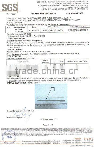 Eagle Bamboo and Wood Products Co., Ltd. is a supplier, manufacturer and wholesaler, which produces abundant bamboo, wooden, willow, rattan and grass products, integrating export, design, and research together. Our company is located in Jianyang City which is one of the largest hometowns of "bamboo and wood" in China, with rich resources and labor force. We are professionally produce and supply bamboo sticks/skewers series such as: round skewers/sticks, flag/golf/cocktail/ "teppo kushi" bamboo sticks, coffee stirrers, paddle/racket/rocket bamboo sticks, flat / "hila kushi" bamboo sticks, double-pronged flat /"langa kushi" bamboo skewers, fruit forks, keko/kuromonji bamboo skewers, toothpicks, ball bamboo skewers/sticks, wooden and bamboo skewers, knotted/ribbon/ "noshi kushi" bamboo skewers, ice cream sticks, any type of bamboo flower sticks for gardening and horticulture, split skewers/sticks, bamboo tongs/pliers, bamboo raw incense sticks and bamboo cloth pins.